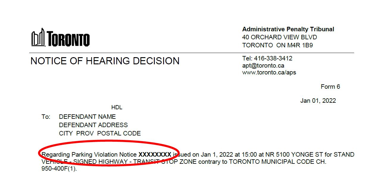 A parking violation notice is issued when a vehicle is parked in breach of a parking/ standing or stopping bylaw contained in the City of Toronto Municipal Code. These bylaws are applied in both situations where a sign is posted or where a vehicle is in violation of an unposed sign parking/standing or stopping bylaw.